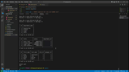 employee-db is server side application that uses sql, node, express, and inquirer to give you the ability to view,add,update employees,roles, managers, and departments in your database application